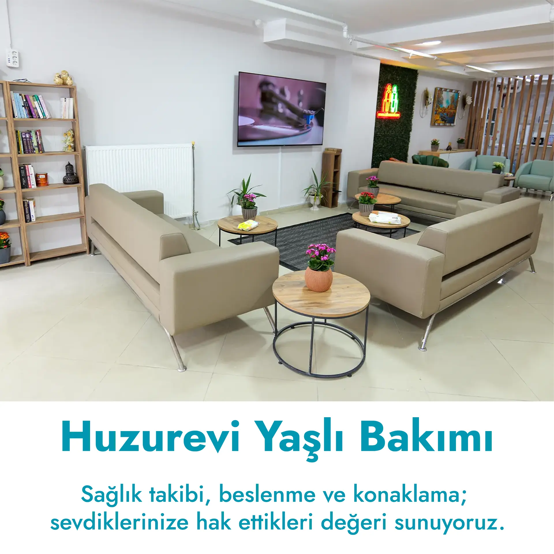 Huzurevi merkezimiz; suit ve paylaşımlı lüks odalardan oluşan 72 kişilik kapasitesi ile ileri yaşta bireyler için konforlu ve güvenli bir yaşam alanı sunar. Bakım ve tedavi hizmetleri, ev konforu anlayışıyla planlanmış donanımlı alanlarda, profesyonel ekipler tarafından yürütülür.